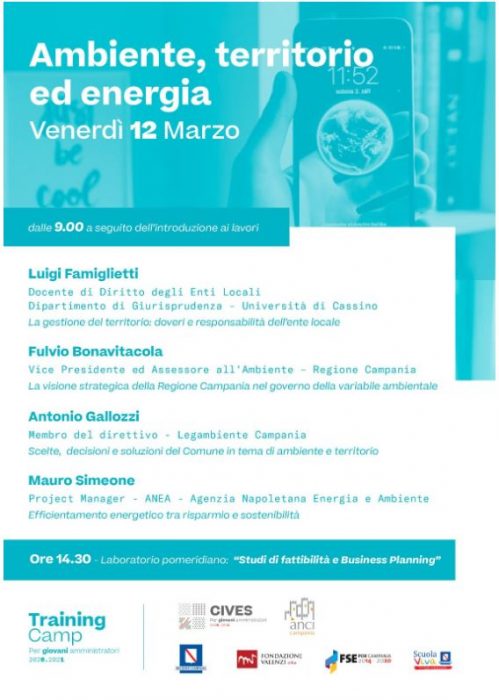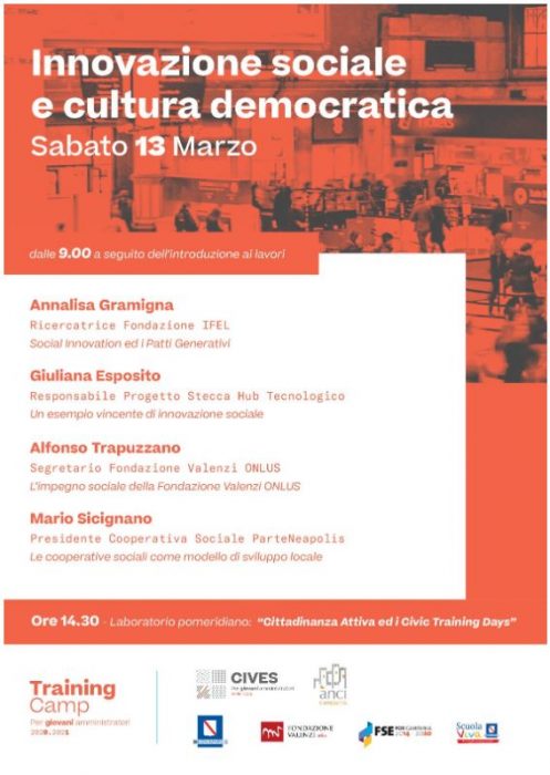«Cives» è la scuola di formazione di ANCI Campania, grazie alla quale 120 tra sindaci, vicesindaci, assessori, consiglieri comunali, municipali e componenti dei Forum dei Giovani parteciperanno a giornate di formazione sui temi di Europa, Comunicazione, Ambiente e Sociale. I Training Camp sono realizzati in collaborazione con la Fondazione Valenzi Onlus nell’ambito del “Programma Scuola Viva – Azioni di accompagnamento” Por FSE Campania 2014-2020. La scuola per giovani amministratori, dopo essersi affermata con successo negli scorsi anni, ha preso avvio lo scorso ottobre nel complesso monumentale Sant’Anna dei Lombardi in una edizione intitolata alla memoria di Maurizio Valenzi, Sindaco di Napoli dal 1975 al 1983, fondatore e primo presidente dell’ANCI Campania.