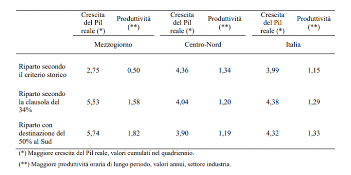 Nel breve periodo, data l’interdipendenza tra Nord e Sud, i maggiori investimenti nel Mezzogiorno alimentano un effetto indiretto sulle produzioni del Nord, attraverso una domanda di beni e servizi necessari alla realizzazione di tali investimenti. La SVIMEZ calcola che per ogni euro di investimento al Sud, si generi circa 1,3 euro di valore aggiunto per il Paese, e di questo, circa 30 centesimi (il 25%) ricada nel Centro-Nord.