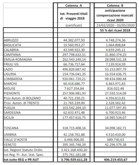 Si tratta di una prima e importante dotazione di 500 milioni di risorse stanziate in questa fase iniziale, ad un mese dalla pubblicazione del Dl Rilancio. Risorse che sono state definite in base ai ricavi da traffico certificati dalle aziende relativi all’esercizio 2018, in attesa che siano disponibili e certificati quelli del 2019.